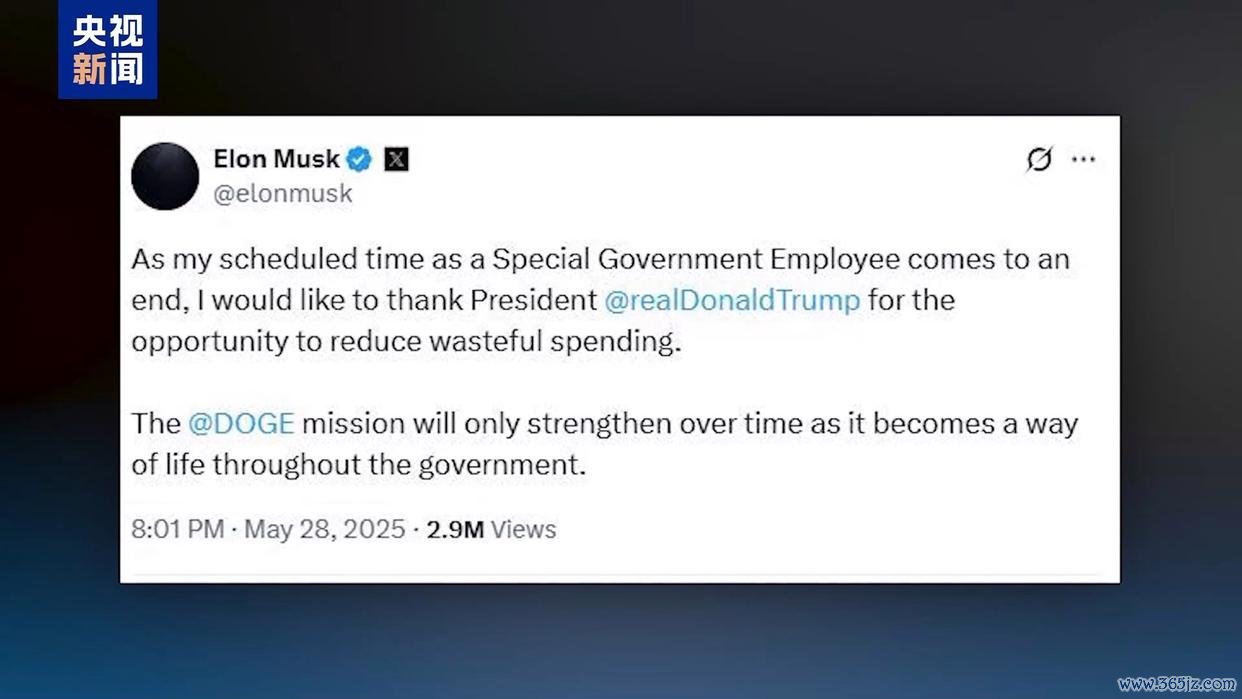 5月28日,美国“政府效率部”负责人马斯克在社交媒体平台上官宣自己的离职决定,美国总统特朗普则在5月29日称宏盈国际,5月30日是马斯克在“政府效率部”任职的最后一天。